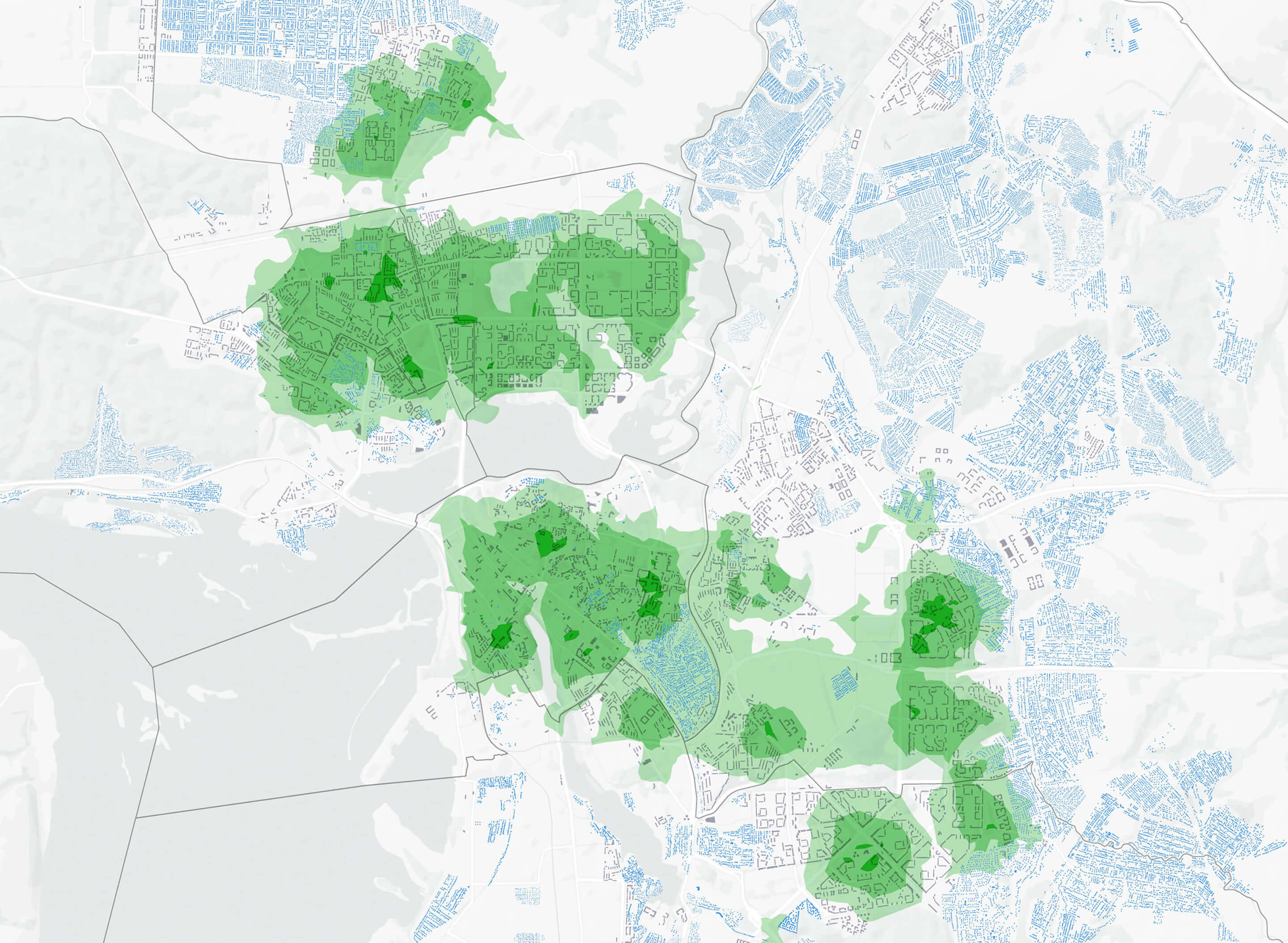 Самый низкий показатель по общей доступности — у района Силино в Зеленограде: там только каждый четвёртый дом находится рядом с поликлиникой, школой и детским садом. А самый низкий доступ к поликлиникам — в Солнцеве: лишь 22% домов имеют их поблизости.